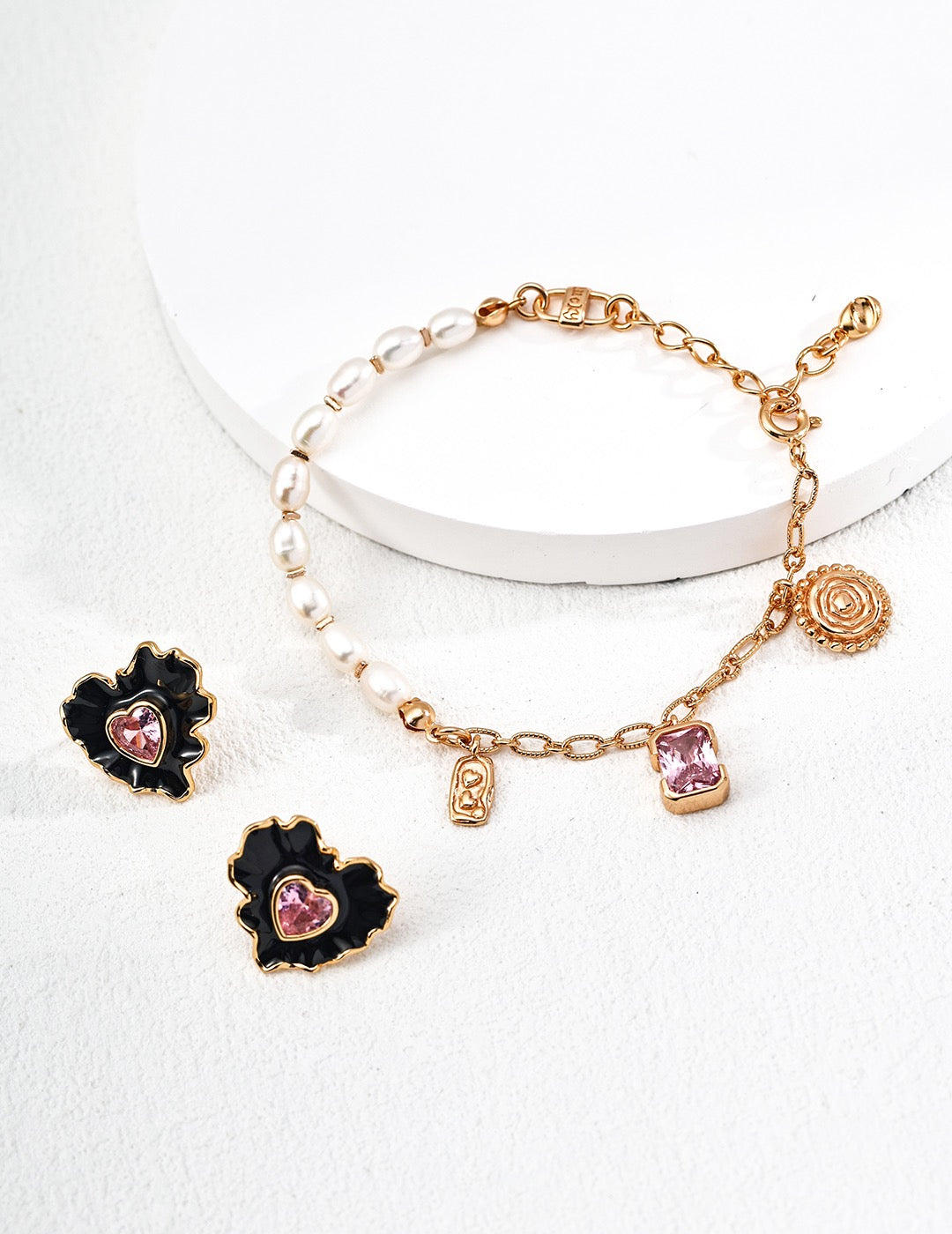 This elegant bracelet brings together the soft luster of natural freshwater pearls with the subtle sparkle of high-quality zircon. Set in vintage gold-finished S925 sterling silver, it's designed to complement your everyday style with a refined, feminine touch. A timeless piece that's perfect on its own or stacked with other favorites.