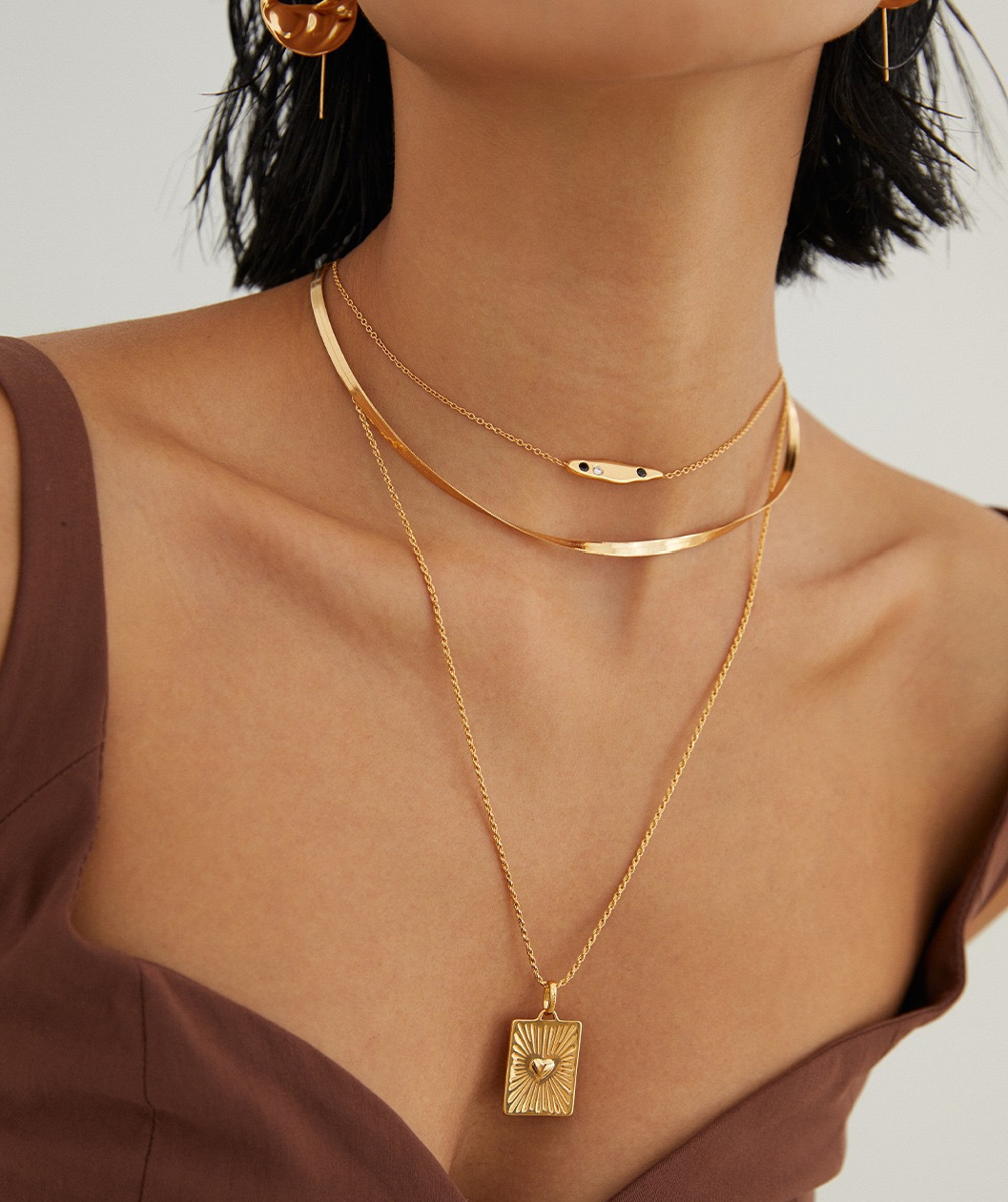 This elegant pendant features a heart-shaped design crafted from S925 silver with a vintage gold finish. Its clean lines and compact size make it a versatile accessory that adds a subtle touch of charm and sophistication to any outfit.