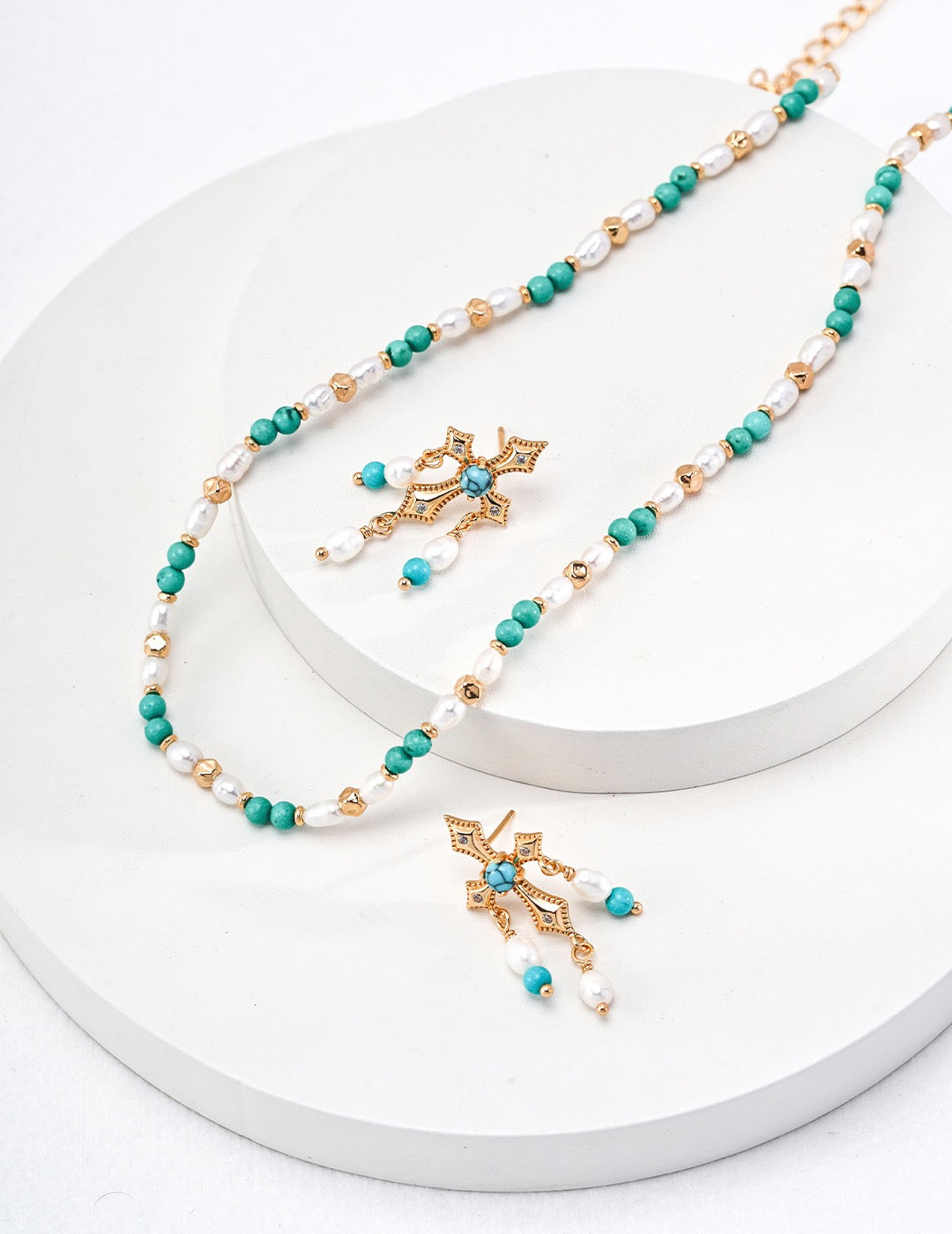 Sterling Silver Pearl &Turquoise Necklace – Vintage Gold