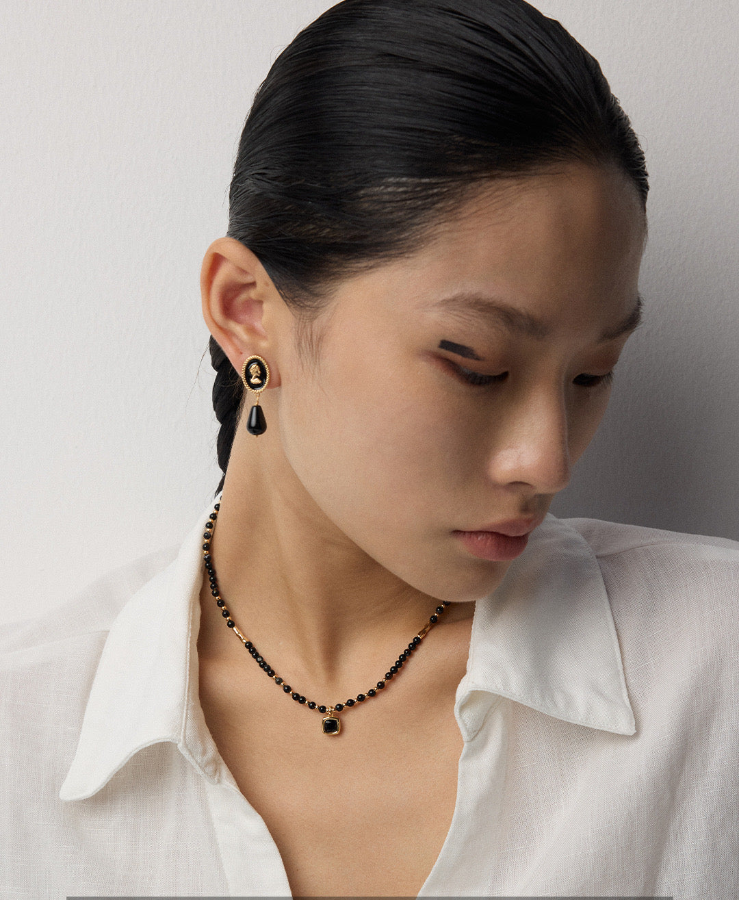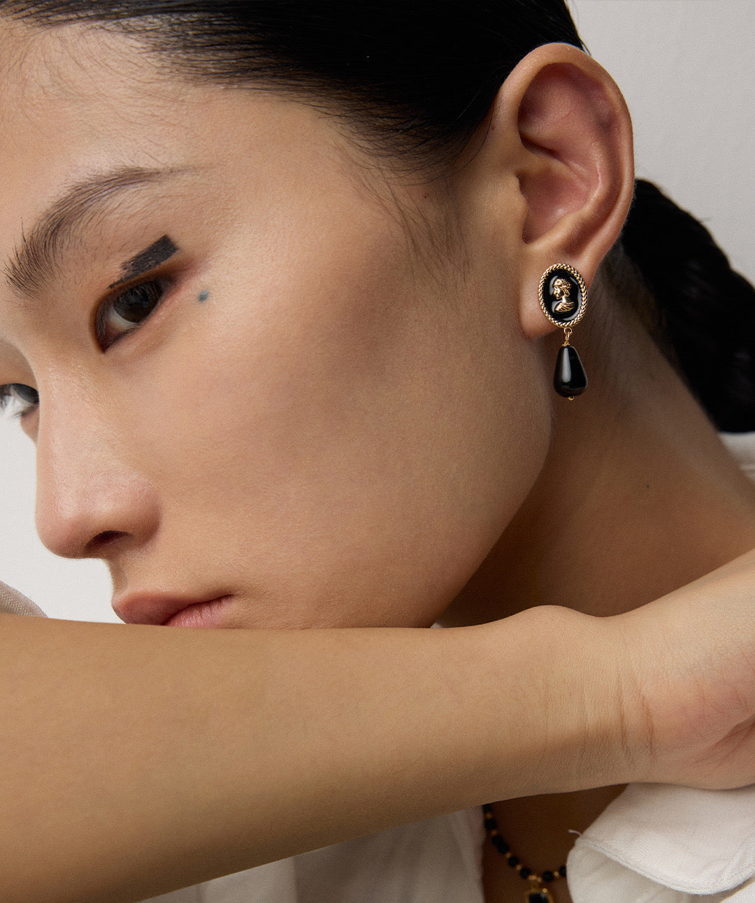 These elegant earrings feature a vintage gold finish on S925 sterling silver, combined with smooth enamel and faux agate details. With a height of approximately 3.5cm, they offer a graceful and timeless look.